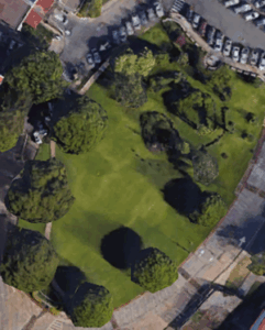 Figure 1. (A) Chaminade University, a portion of lower campus; (B) A portion of Lyon Arboretum; (C) Portion of Roundtop Forest Reserve. Google satellite images, approximately the same altitude and sized areas.
